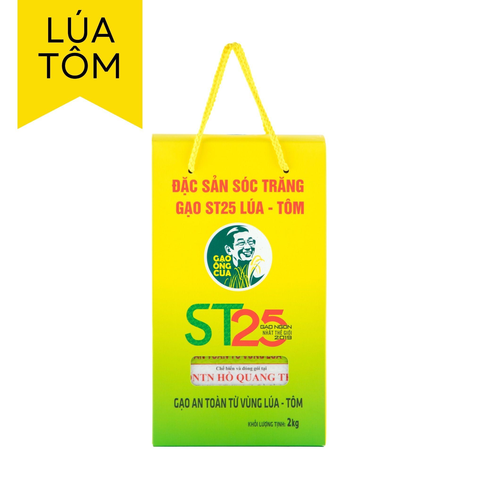 Gạo Ông Cua ST25 Lúa-Tôm "Gạo ngon nhất thế giới năm 2019 & 2023" được đóng túi 2kg, Một kiện hàng theo tiêu chuẩn nhà máy đóng gói có 8 sản phẩm , đóng theo thùng là 16kg